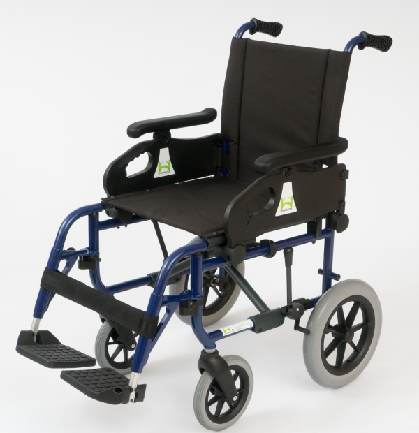 Silla de ruedas de tránsito plegable con reposapiés, respaldo y reposabrazos acolchados, con frenos en manetas | ancho asiento 41 o 46 cm | Pirámide