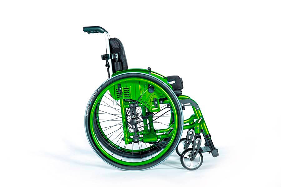 Youngster 3 es una silla de ruedas infantil de aluminio autopropulsable, con chasis plegable, un diseño muy moderno e infinitas posibilidades de configuración.