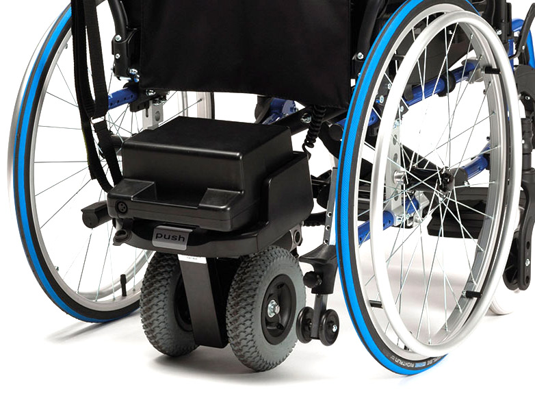 El sistema de asistencia eléctrica V-Drive amplía el margen de movilidad de su silla de ruedas manual. Ayuda al acompañante a empujar la silla de ruedas. Para superar pendientes o sencillamente para dar un paseo al aire libre… dos situaciones perfectas para utilizar el dispositivo de impulso auxiliar V-Drive. Con el intuitivo control del V-Drive podrá usar su silla de ruedas a diario con total comodidad. Ofrecemos dos versiones del dispositivo de impulso auxiliar V-Drive: