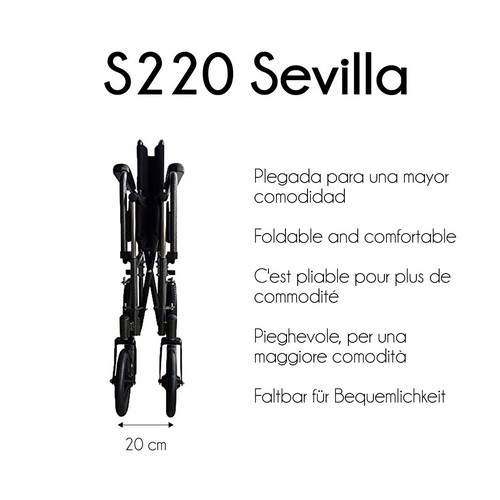 Silla de ruedas plegable de acero, autopropulsable con reposapiés y reposabrazos extraíbles | Modelo S220 Sevilla