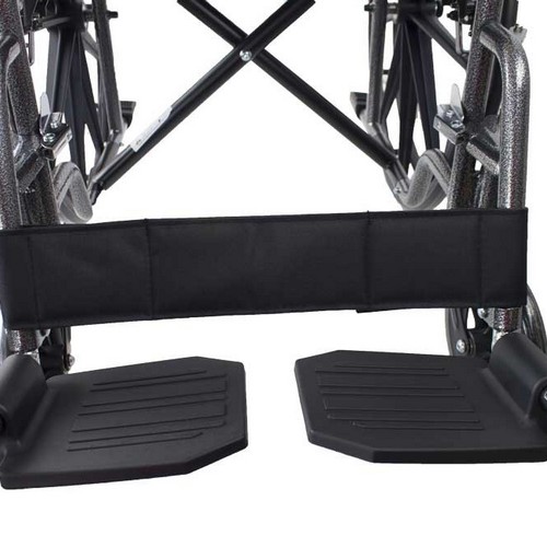 FÁCIL DE USAR: los reposapiés de esta silla ruedas se extraen fácilmente. Son regulables en altura para adaptarse a la estatura del usuario.