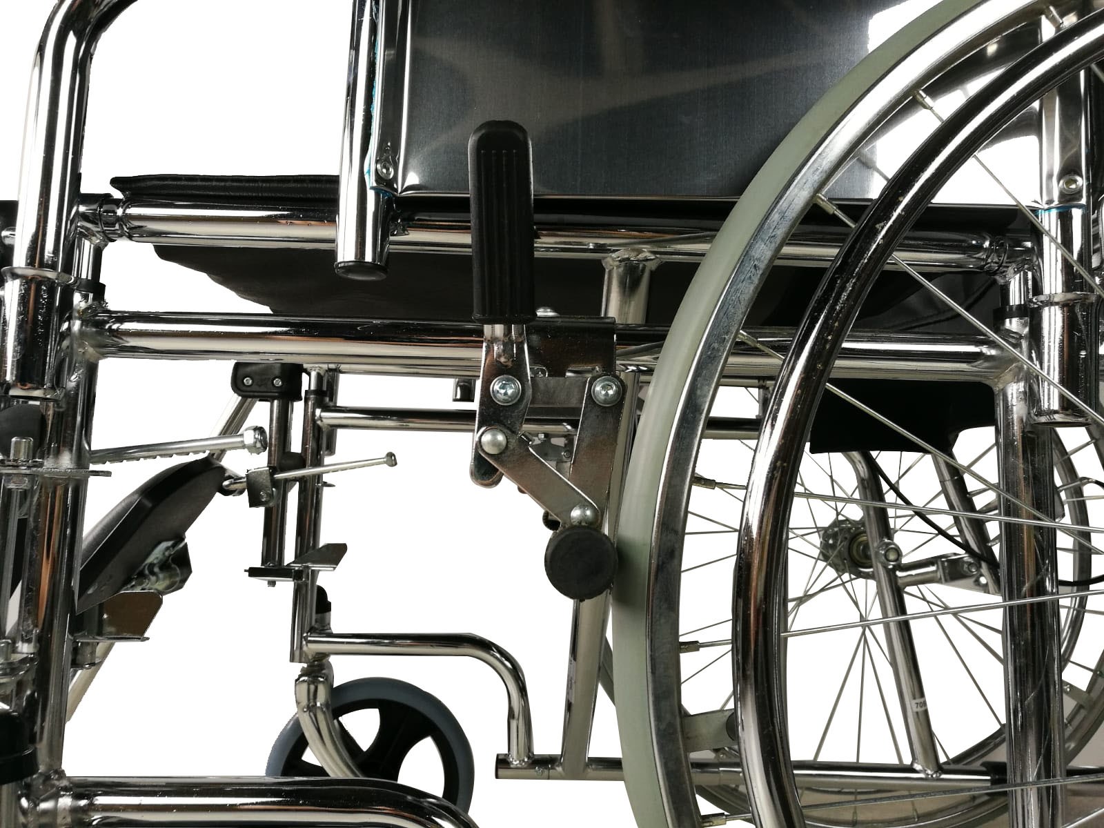Esta silla para personas con movilidad reducida cuenta con una palanca de pie, la cual es de gran ayuda para el acompañante a la hora de subir y bajar pequeños escalones.