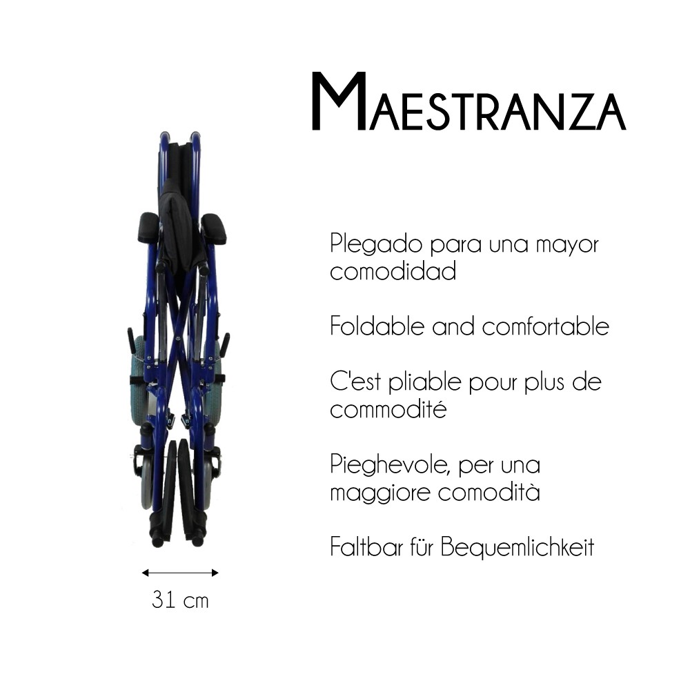 No lo dudes más y hazte con la silla de ruedas modelo Maestranza. Supondrá un gran alivio en tu rutina diaria y no solo tú, sino también tus familiares y acompañantes ganaréis en calidad vida.