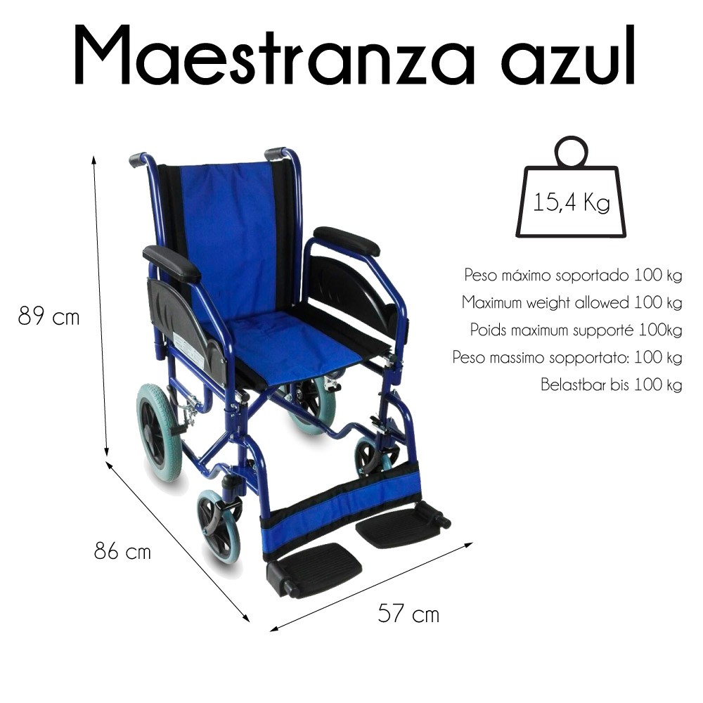 Silla de ruedas plegable, ultraligera y no autopropulsable, reposabrazos y reposapiés extraíbles, ancho asiento 45 cm, color azul “Mod. Maestranza”