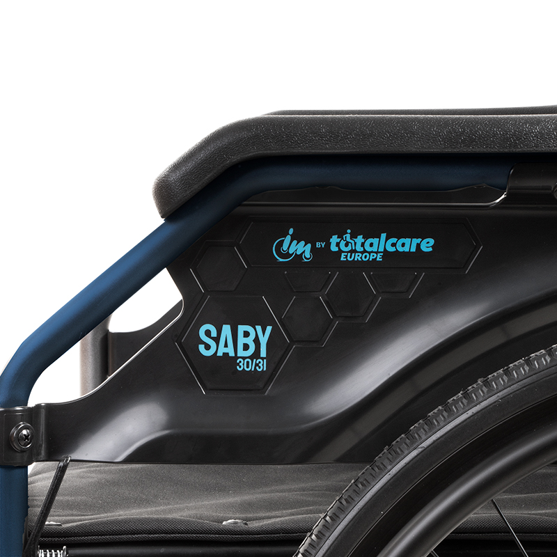 Las ruedas traseras de la silla Saby-30 tienen una medida de Ø30 cm, y las ruedas traseras de la silla Saby-31 tienen una medida de Ø60 cm, estas últimas permiten al usuario autopropulsarse con la silla.