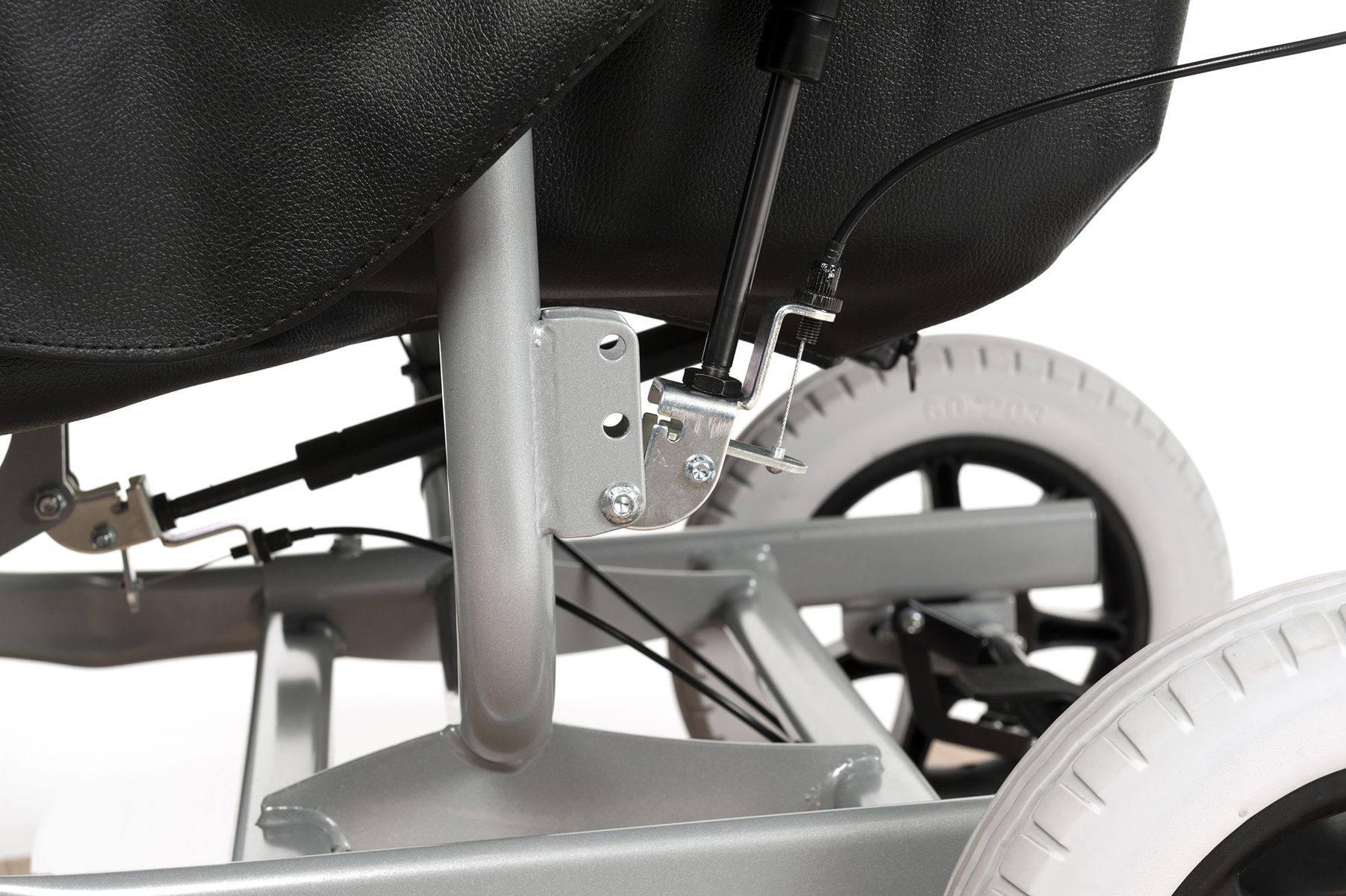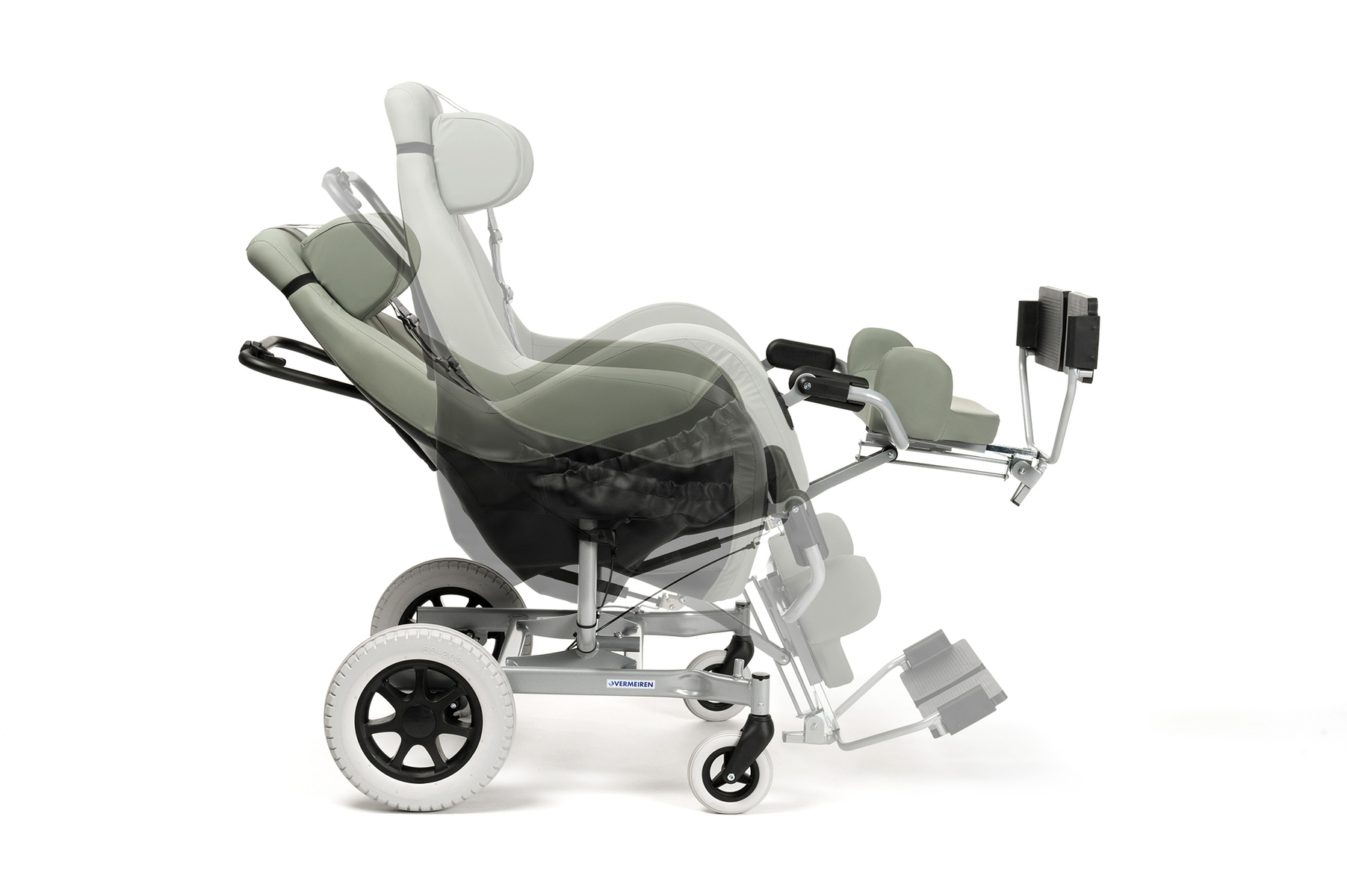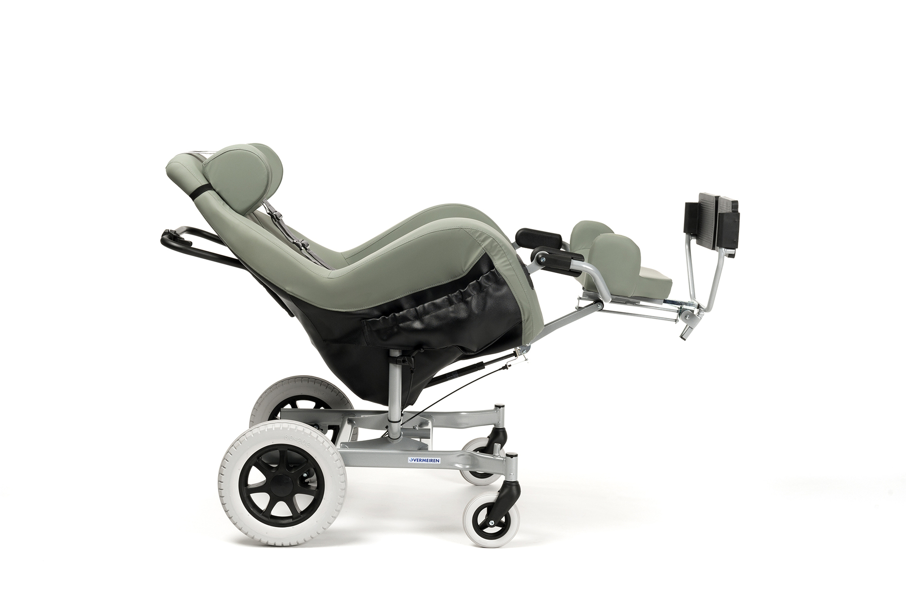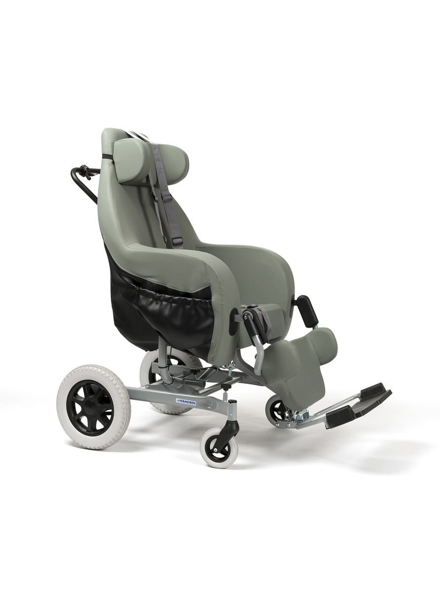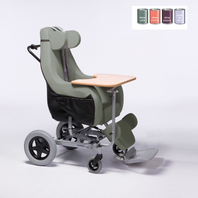 Sillón Confort basculante Coraille para uso en interiores/exteriores con 4 ruedas: 2 ruedas traseras grandes y 2 ruedas delanteras giratorias. Incluye de serie: