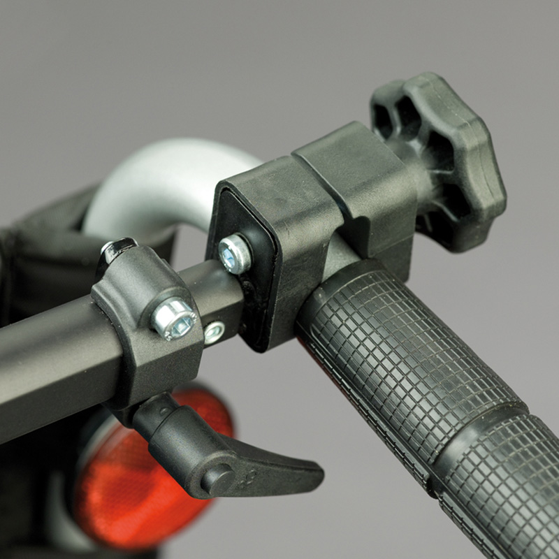 Sistema regulable de soporte para cabezal blando de PU. Fabricado en aluminio de alta calidad, se adapta a sillas, sin necesidad de herramientas. Se fija a los puños del respaldo de la silla de tubos de 22 y 25 mm de diámetro (ø).