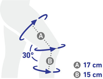 - Mediante la adaptación tridimensional de las articulaciones de la ortesis al eje de giro de compromiso individual se evita que se ejerzan tensiones forzadas sobre la articulación de la rodilla.