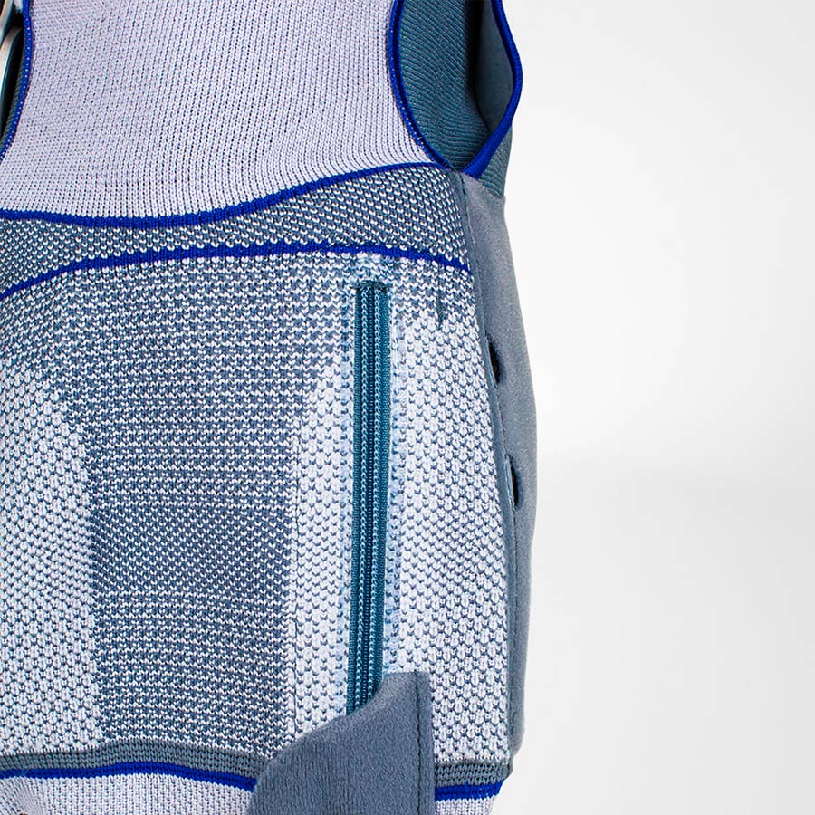 - estabiliza la rodilla gracias a sus “inteligentes” flejes articulares y su tejido especial