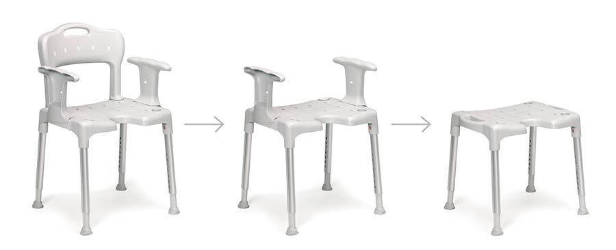 El taburete de ducha SWIFT es estable en cualquier suelo. Diseñado en Suecia por A&E design AB en estrecha colaboración con profesionales de la terapia ocupacional y de usuarios. Su concepción modular hace que SWIFT sea justo lo que necesitamos desde un taburete hasta una silla de ducha completa (brazos y respaldo no incluidos, opcionales), dependiendo de las necesidades del usuario y de cómo éstas cambien.