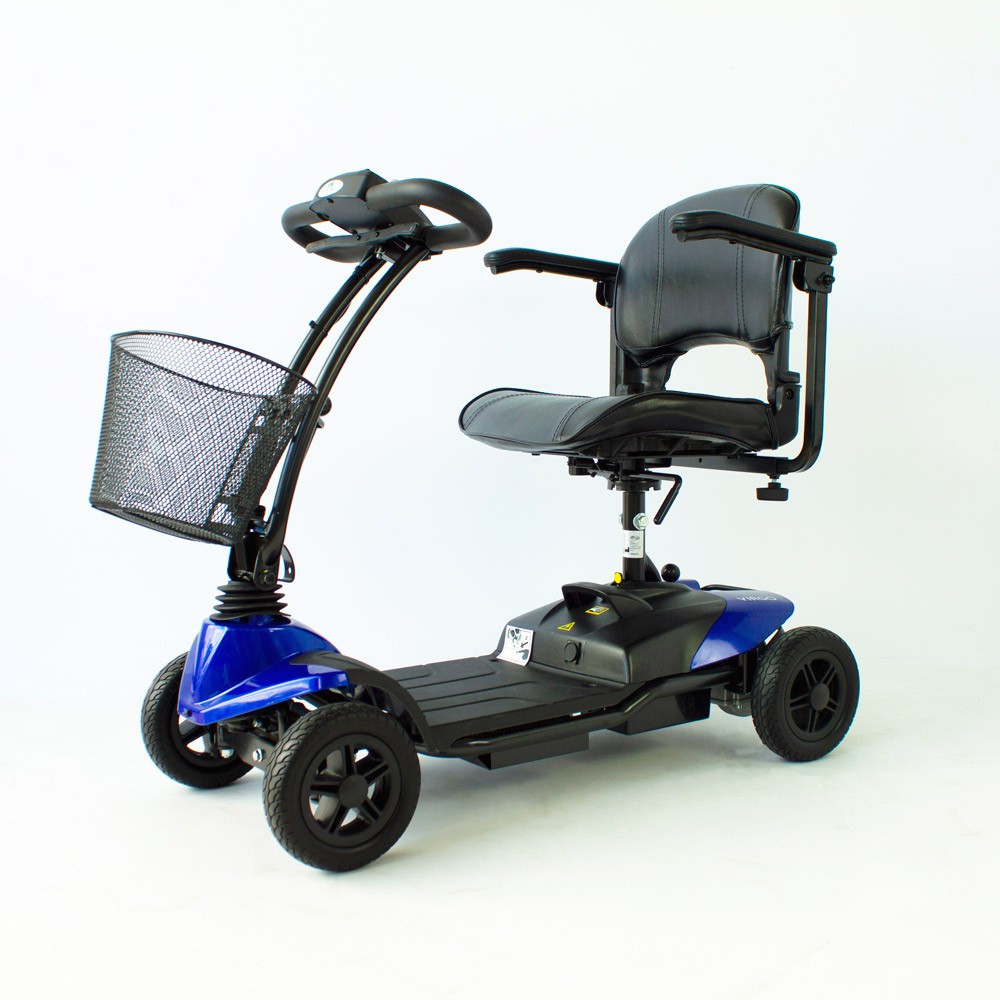 Scooter eléctrico con 4 ruedas, plegable, compacto color azul | Piscis