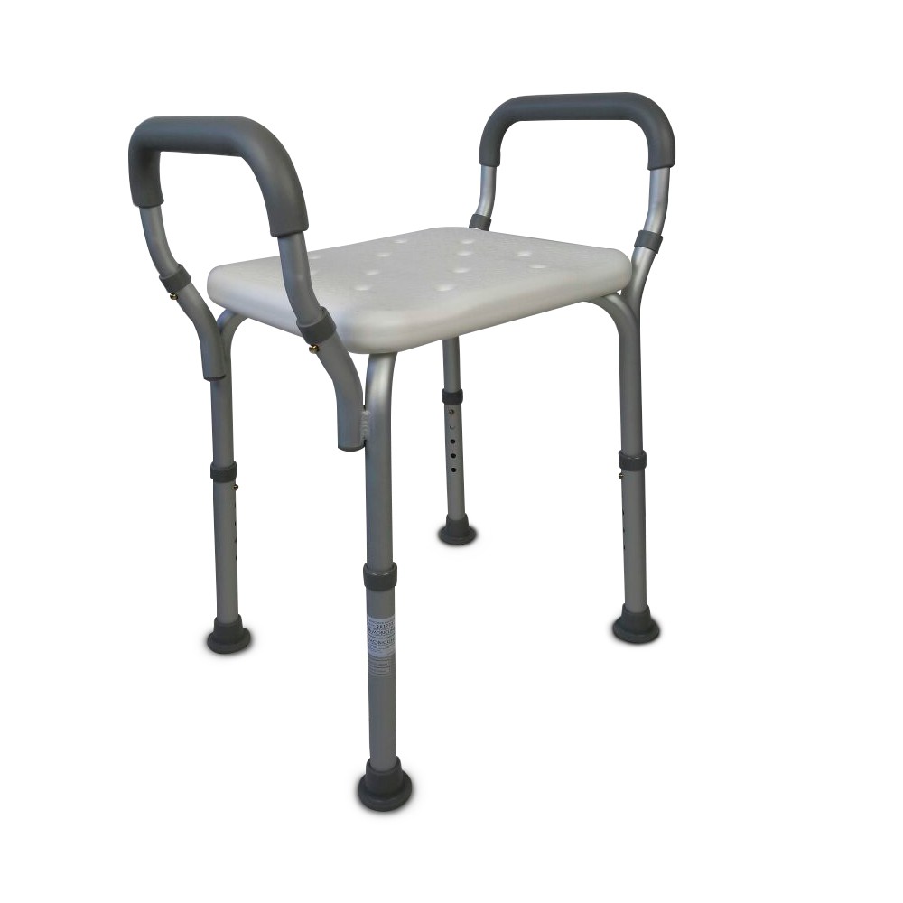 Silla asiento para baño con reposabrazos y regulable en altura, de aluminio y PVC | Acueducto