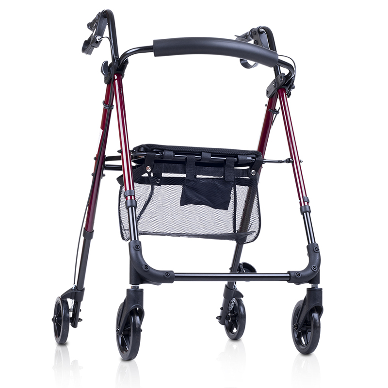 Andador plegable de 4 ruedas | con asiento, cesta, respaldo y porta bastones | Frenos por presión | CR04-FM | Rojo o Azul