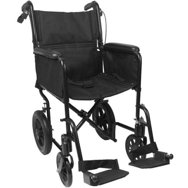 Silla de ruedas de aluminio para tránsito, plegable, con bolsa para transporte y frenos | Modelo Neptuno | Color Negro