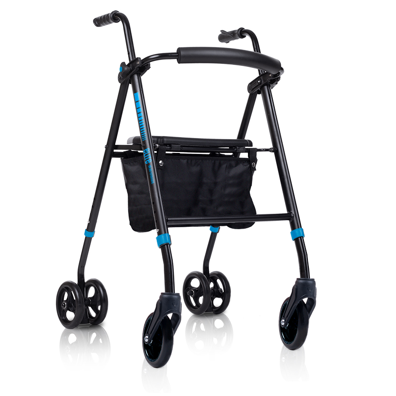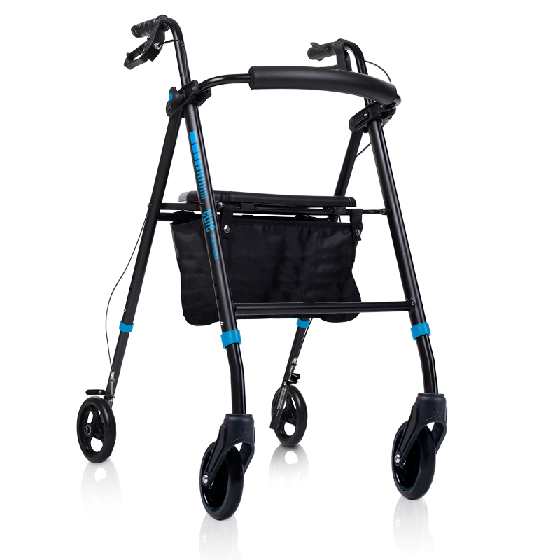Andador plegable, regulable con asiento, cesta y respaldo | Freno por presión | Elite FP