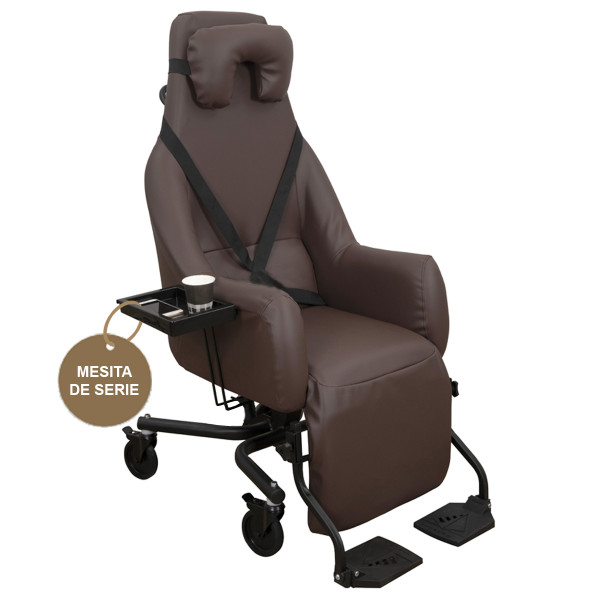 Silla WC con ruedas y tapa | Reposabrazos abatibles | Reposapiés extraíbles | Burdeos |”Modelo Ancla”